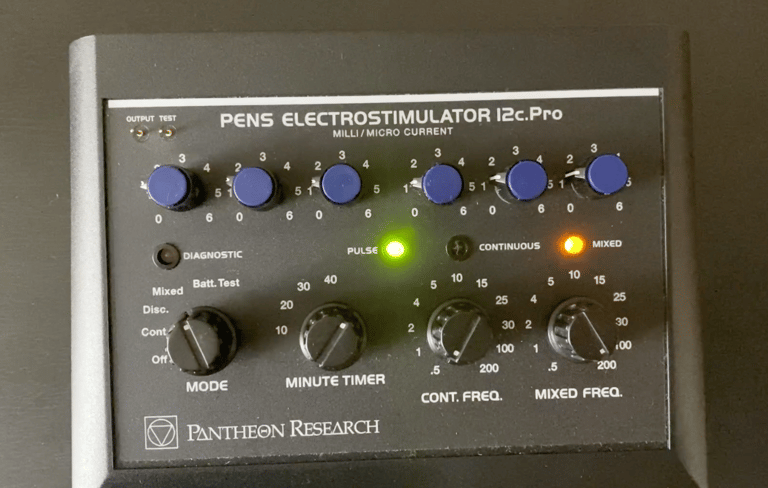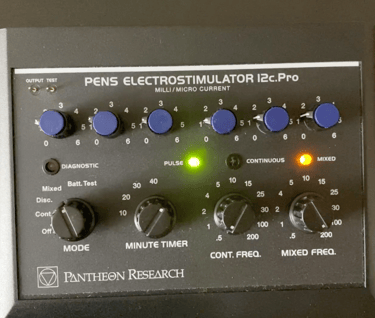 For all you acupuncturists out there, I prefer a mixed frequency using the lowest, and the highest frequency available on the machine, I use a Pantheon Research, which is a very well made machine that has a frequency range of 0.5 Hz - 200 Hz. I set the machine to "Mixed" so that it uses those two frequencies alternating, a few seconds of the low frequency, and a few seconds of the high frequency. The lower frequencies will stimulate the deeper structures including the bones and tendons, and the higher frequencies will stimulate the more shallow tissues like the cells in the muscles and in the skin. The nerves are both at the level of the bone, and the muscle, so I think it's important to have as wide a range of frequency stimulation as possible.